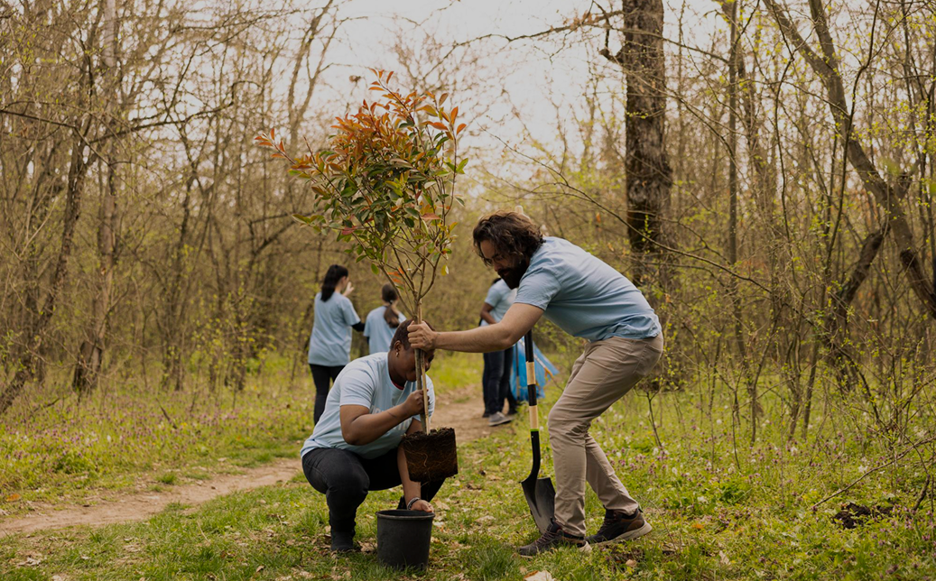 Tree plantation drives, rainwater harvesting, and green building practices.
